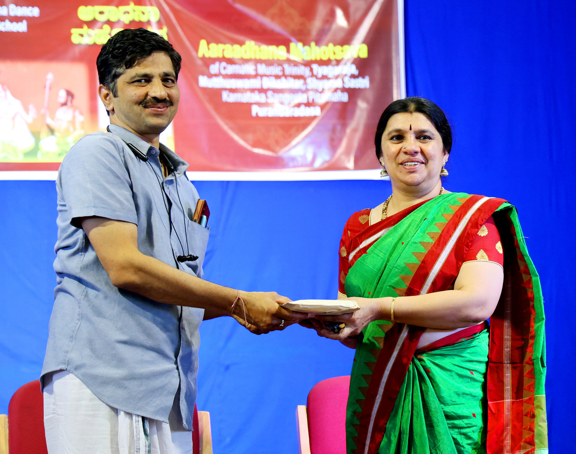 Renowned Bharatanatyam artist Smt. Suma Aithal was the Chief Guest and spoke about the significance of the Aradhana Mahotsava. Sri Nagendra Kamat, Director of Rashtrotthana Yoga Kendras, was also present on the dais.