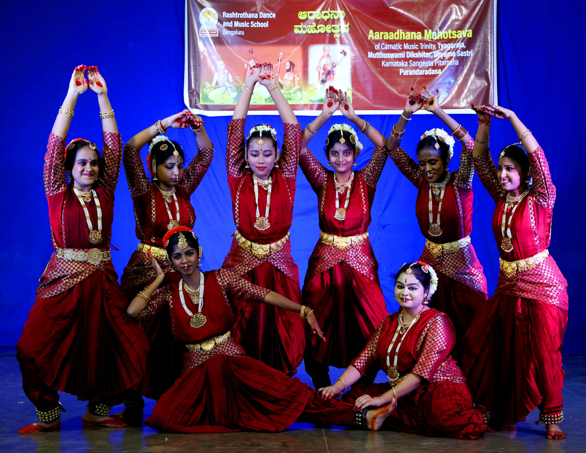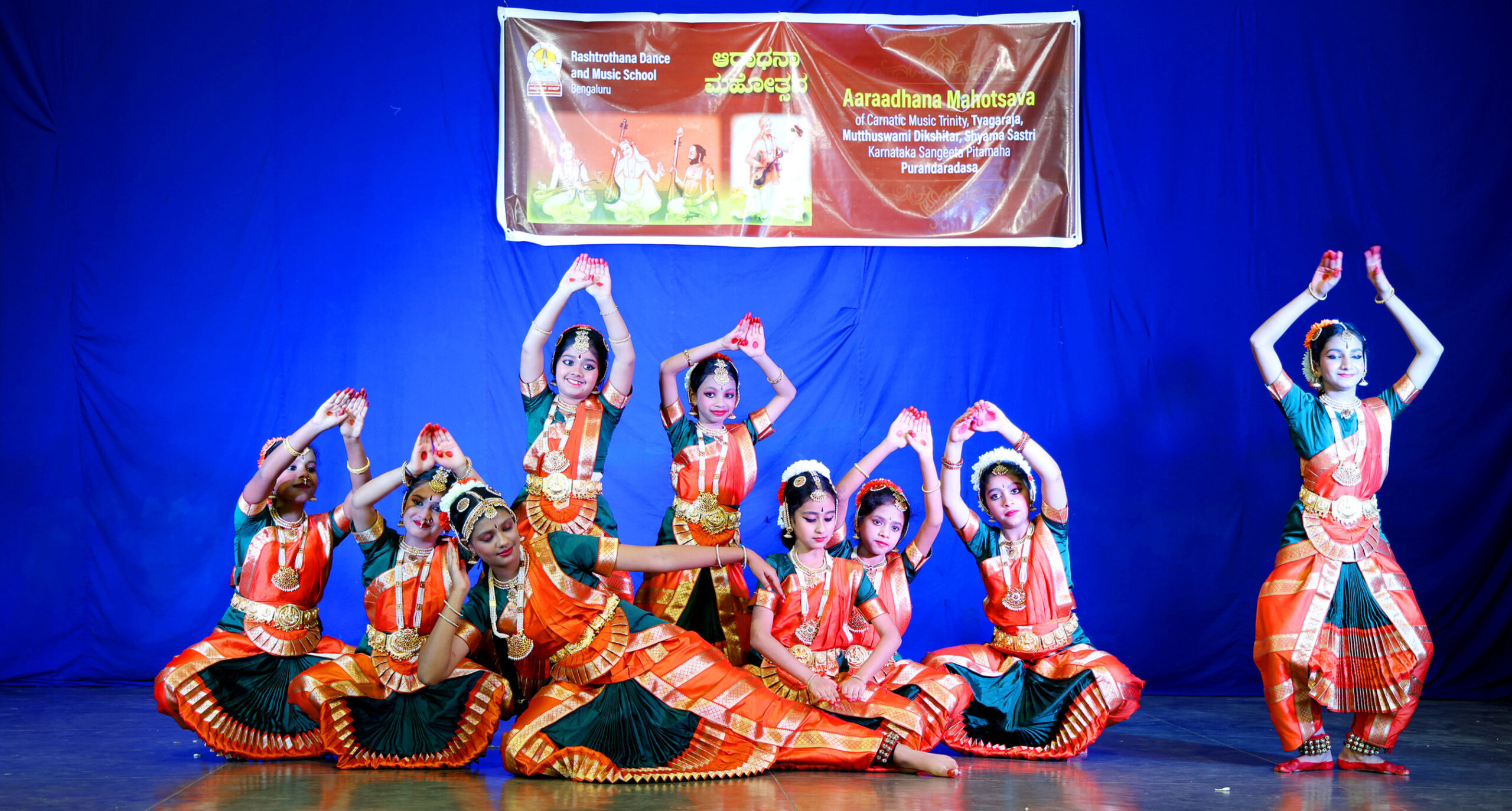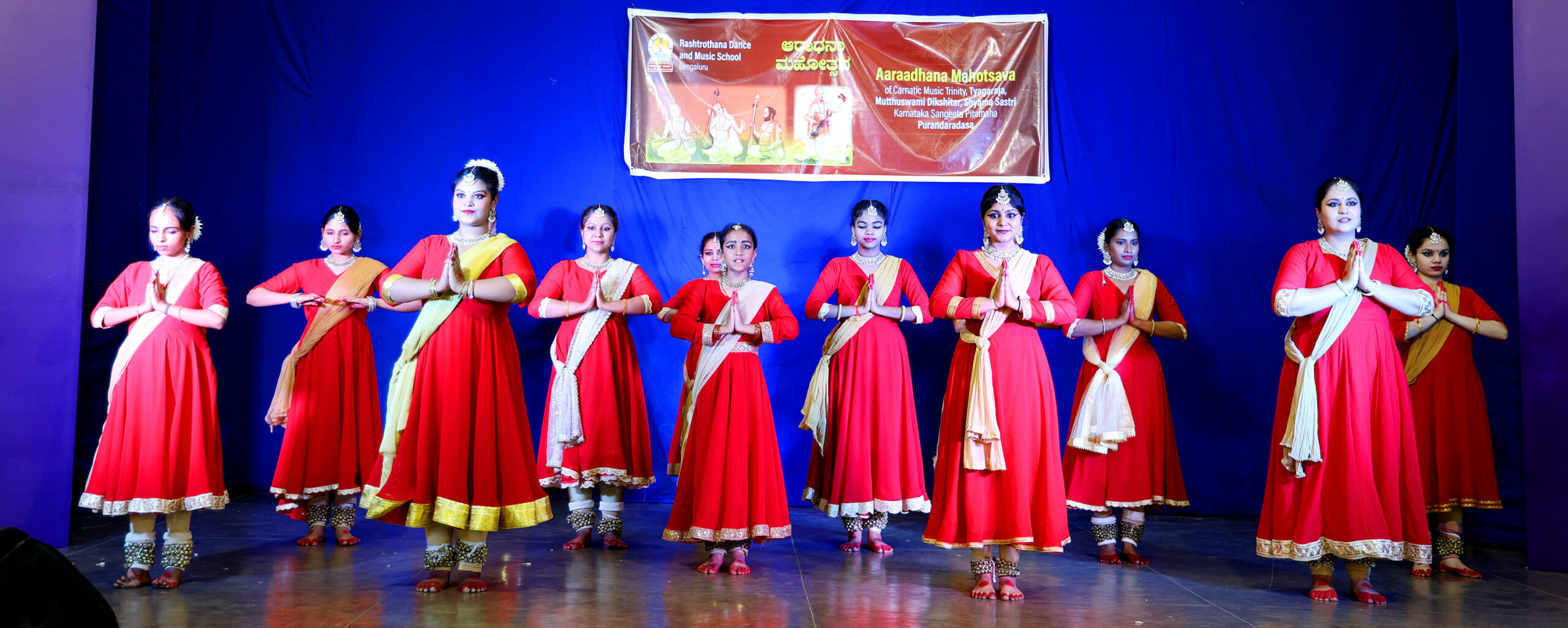 Bengaluru, Jan. 24: Students of Rashtrotthana Natya Sangeetha Kendra, Sunkenahalli, celebrated the Aradhana Mahotsava at Keshavashilpa in honour of the Trinity of Carnatic Music — Sri Tyagaraja, Sri Muttuswami Dikshitar, and Sri Shyama Shastri — as well as Sri Purandaradasa, who is regarded as the father of Carnatic Music.