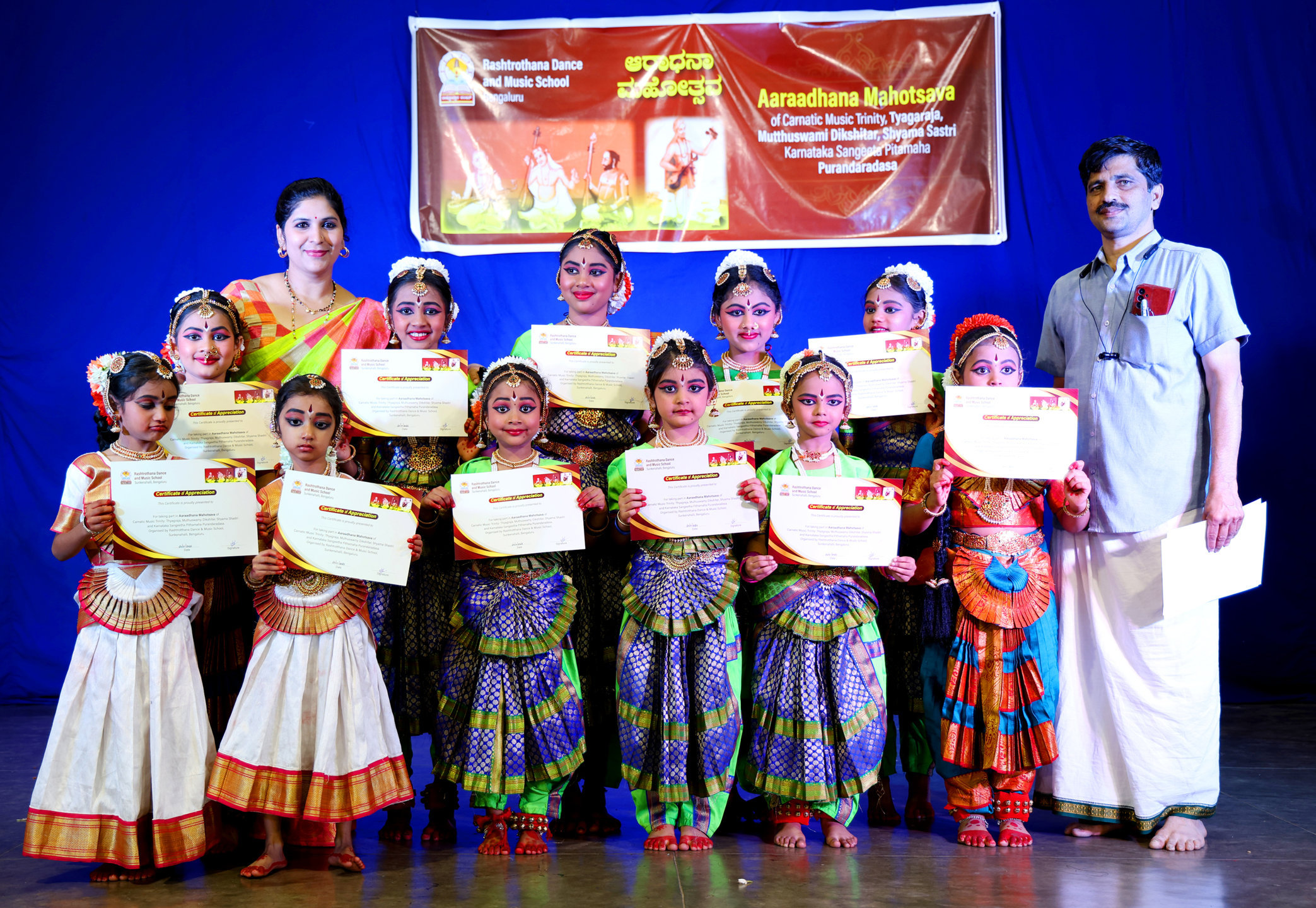 Various students of the Natya Sangeetha Kendra gave cultural performances during the celebration. At the end of the programme, certificates were distributed to all the participating children.