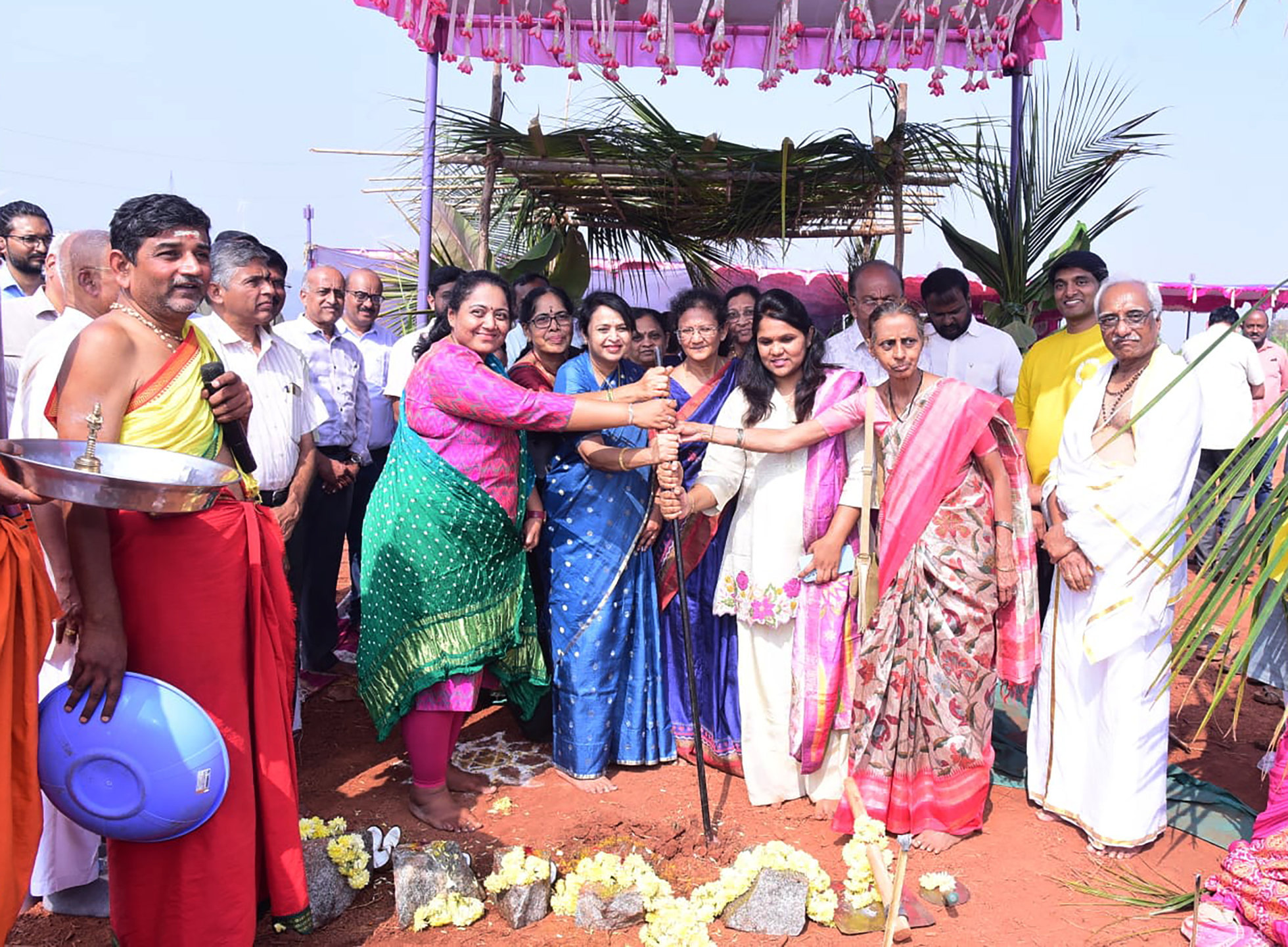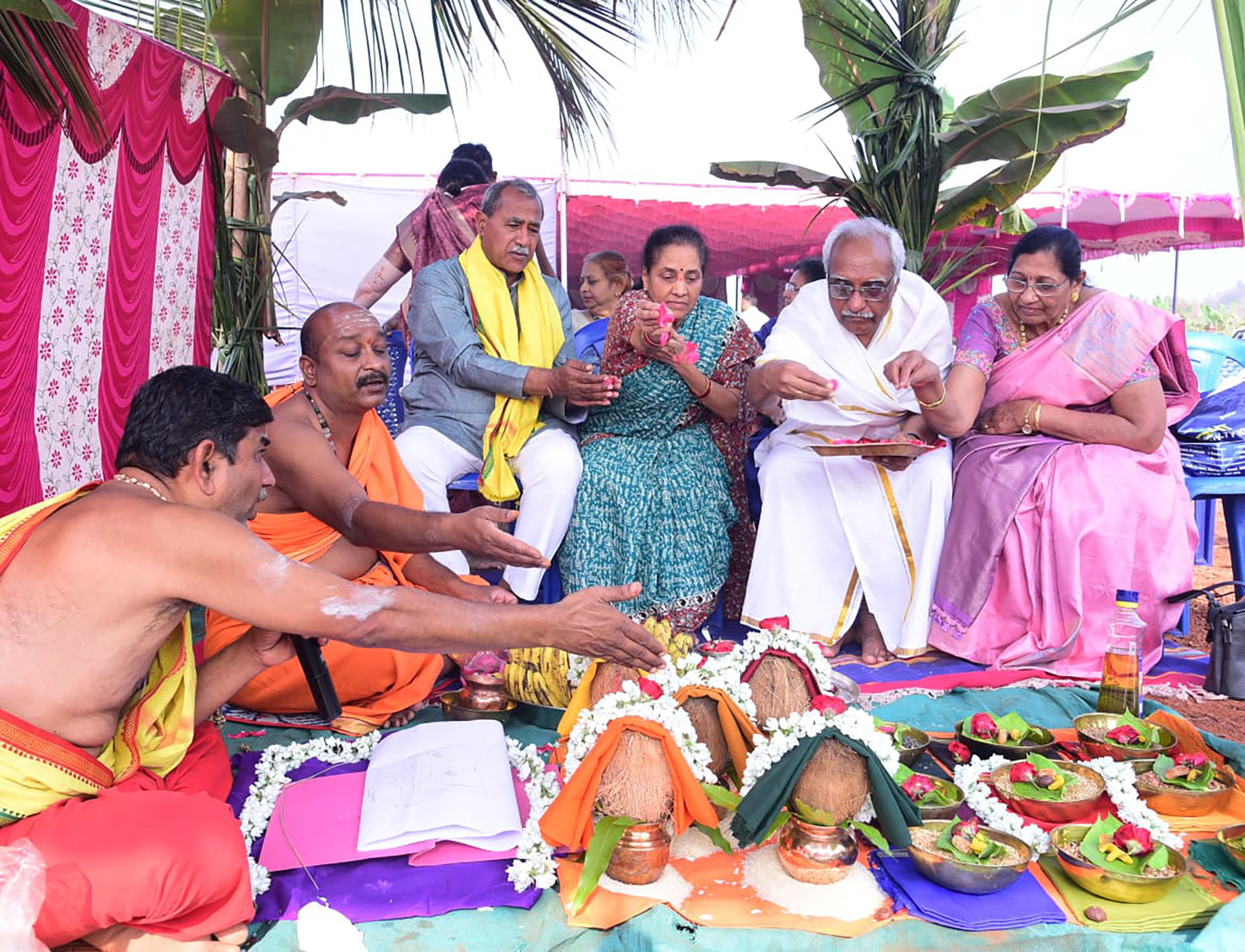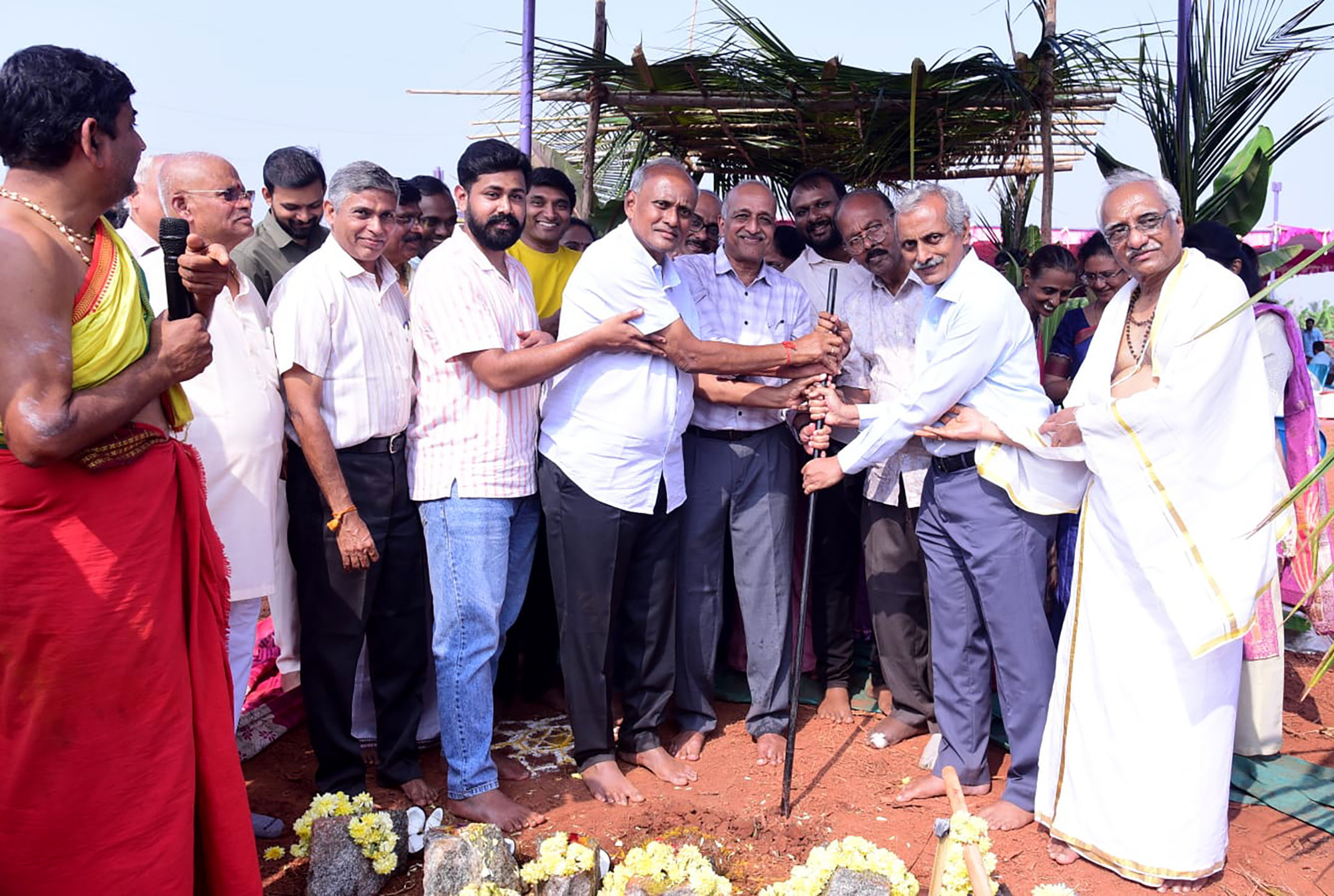 Bhoomi Puja Held for Rashtrotthana Vidyakendra’s 21st CBSE School in Hosapete in Memory of Punyamurthi Yamanappa
