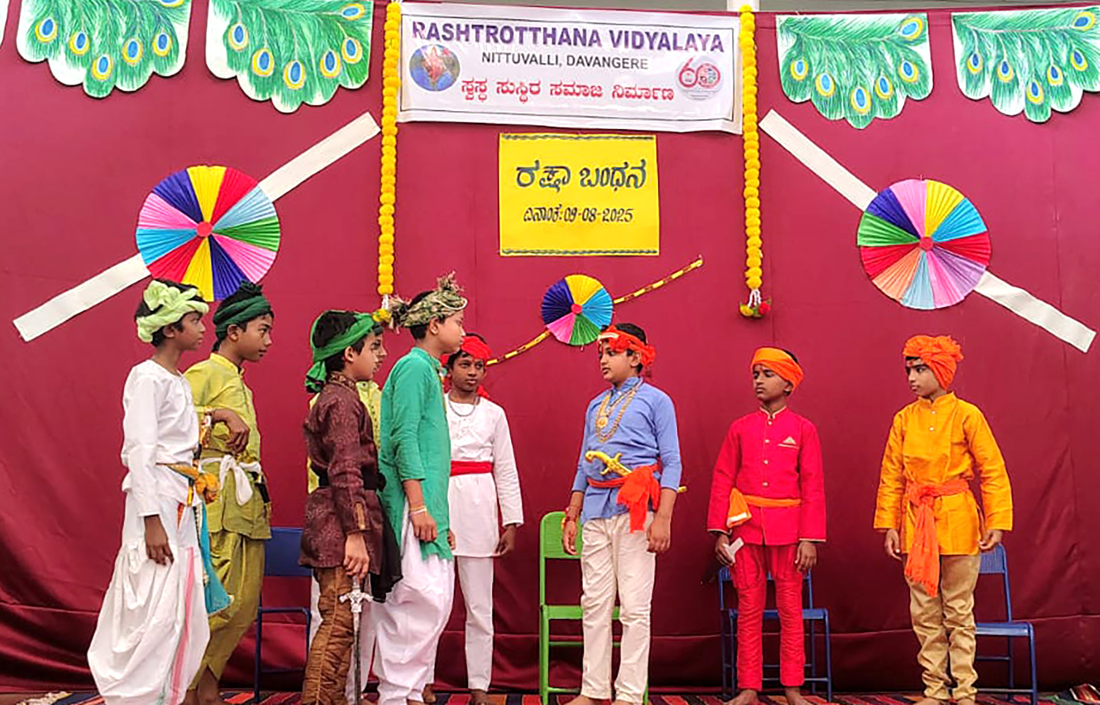 Shravana Purnima, Aug 9: The Raksha Bandhan festival was celebrated with great enthusiasm at Keshava Shilpa, Mudranalaya, Tapas and Rashtrotthana Schools.