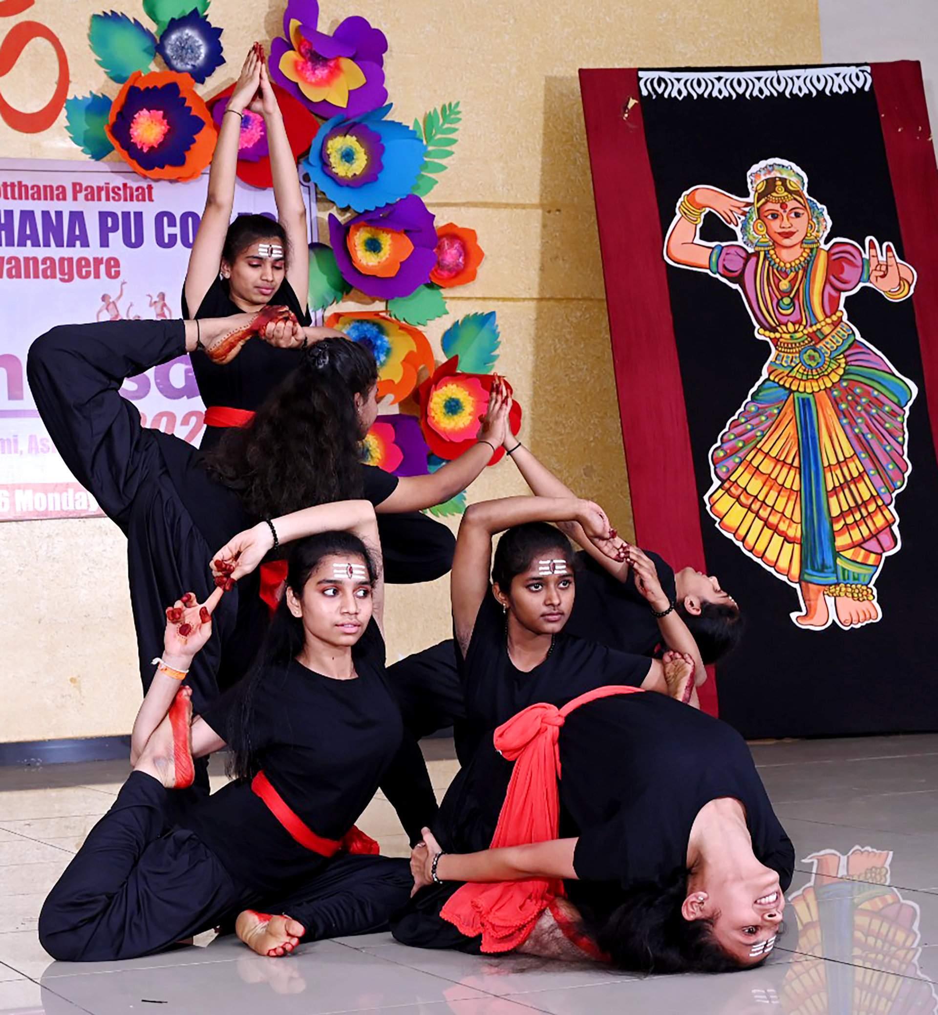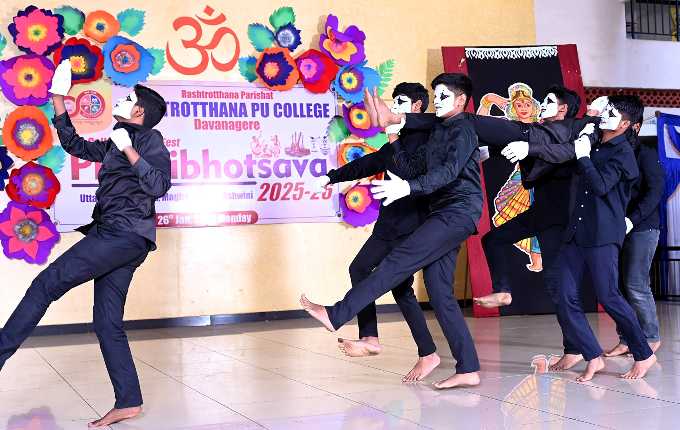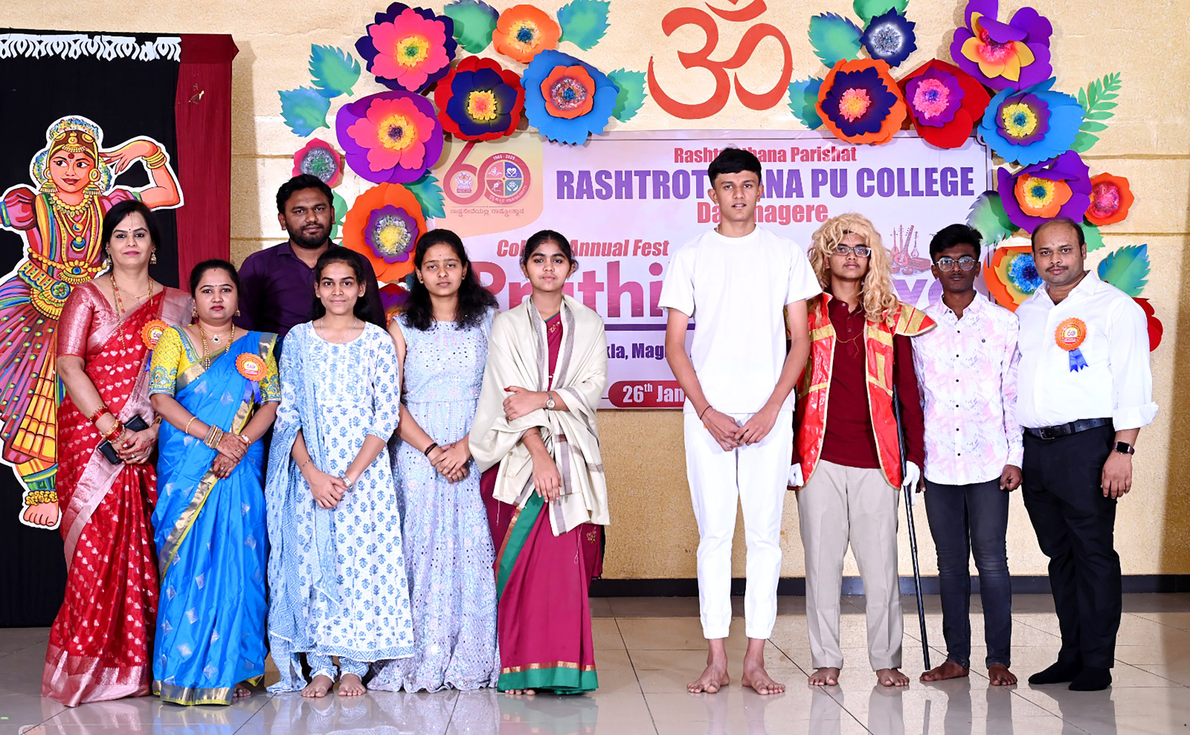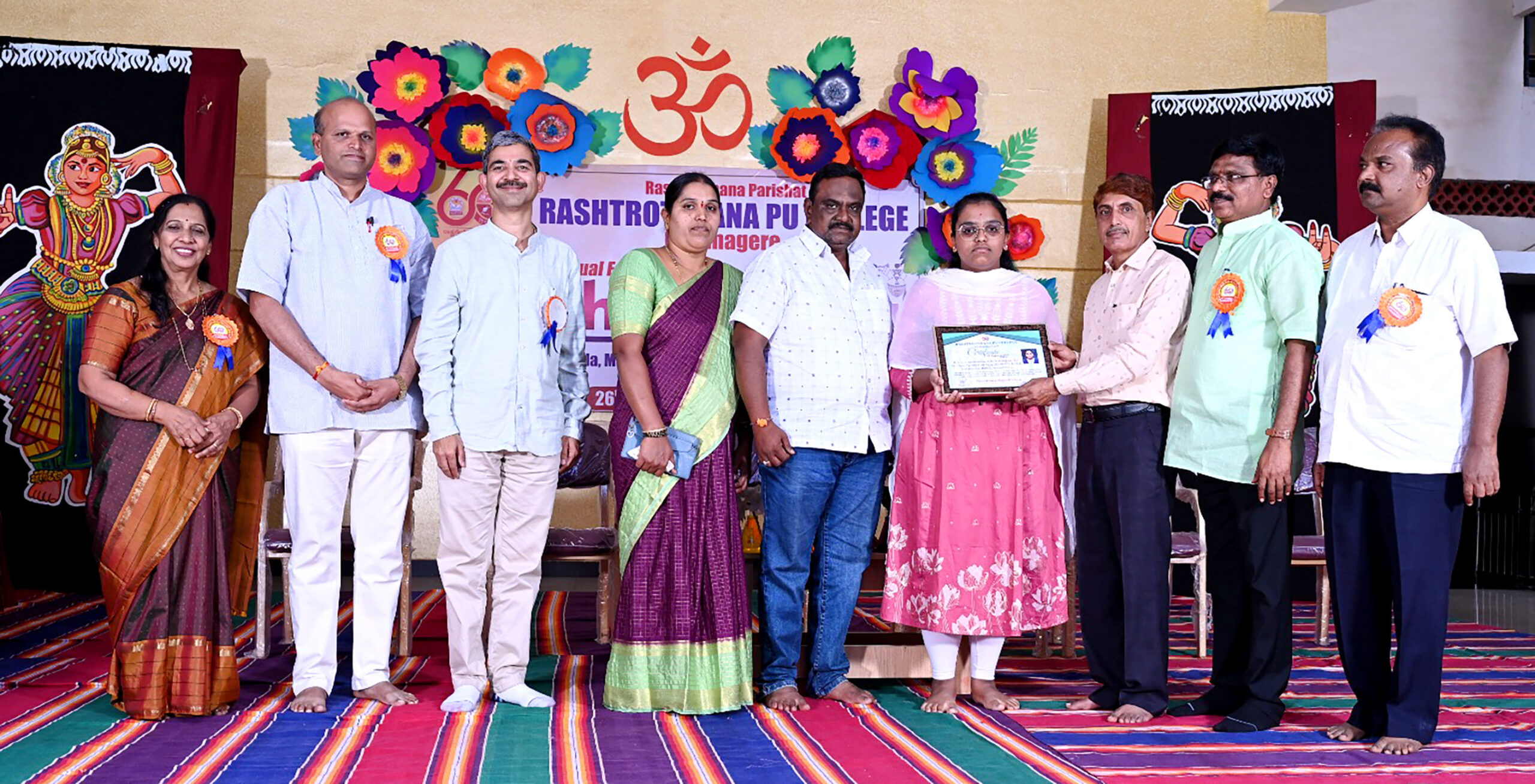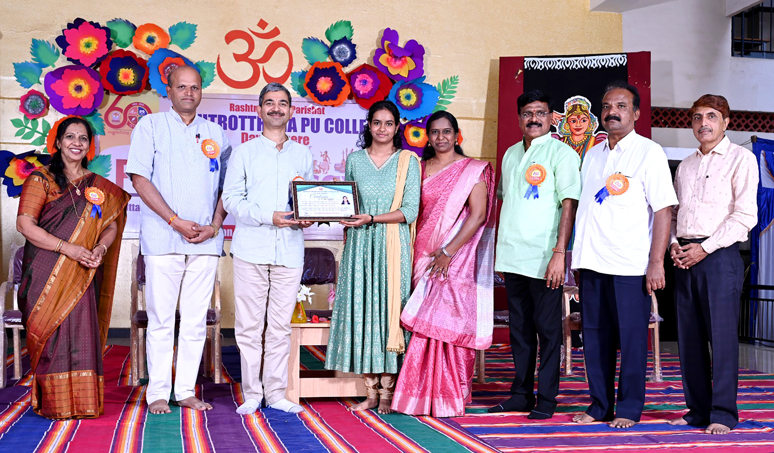 Jan. 26: The Pratibhotsava (Talent Celebration) was held with great joy and enthusiasm at Rashtrotthana Pre-University College, Davanagere. Sri Gajanan Londhe, a member of the Rashtrotthana Managing Committee, spoke about the importance of learning skills along with academic degrees. College Secretary Sri Jayanna H spoke about the students who have come from 23 districts of the state to receive value-based education along with coaching for NEET, JEE, and K-CET. Principal Sri Umesh S M presented the annual report.