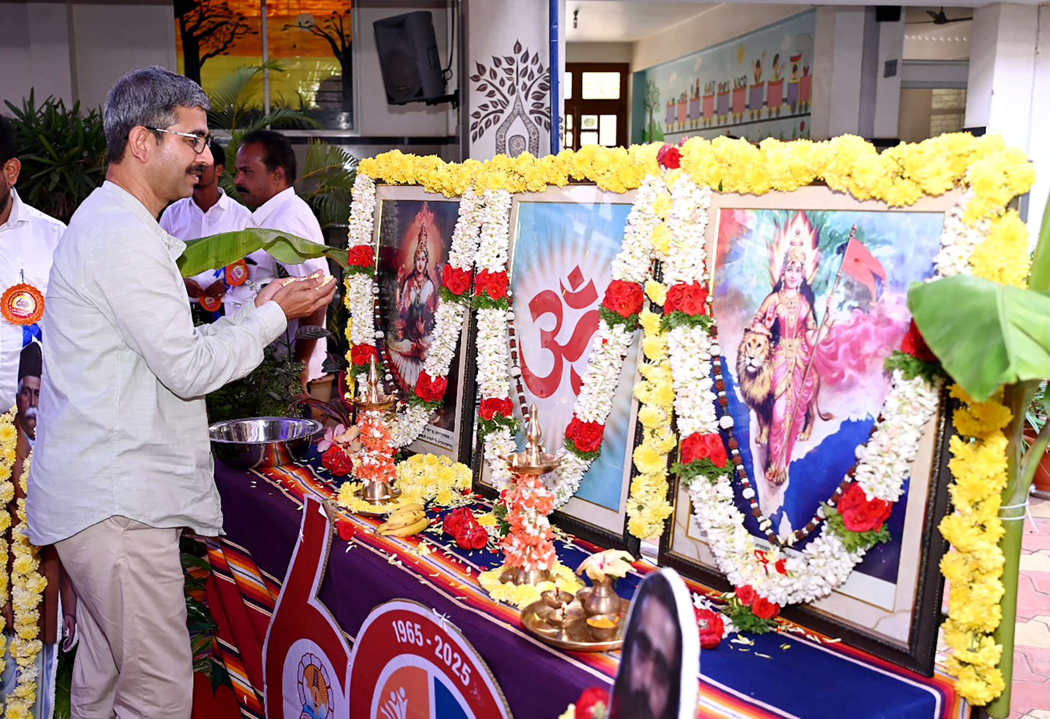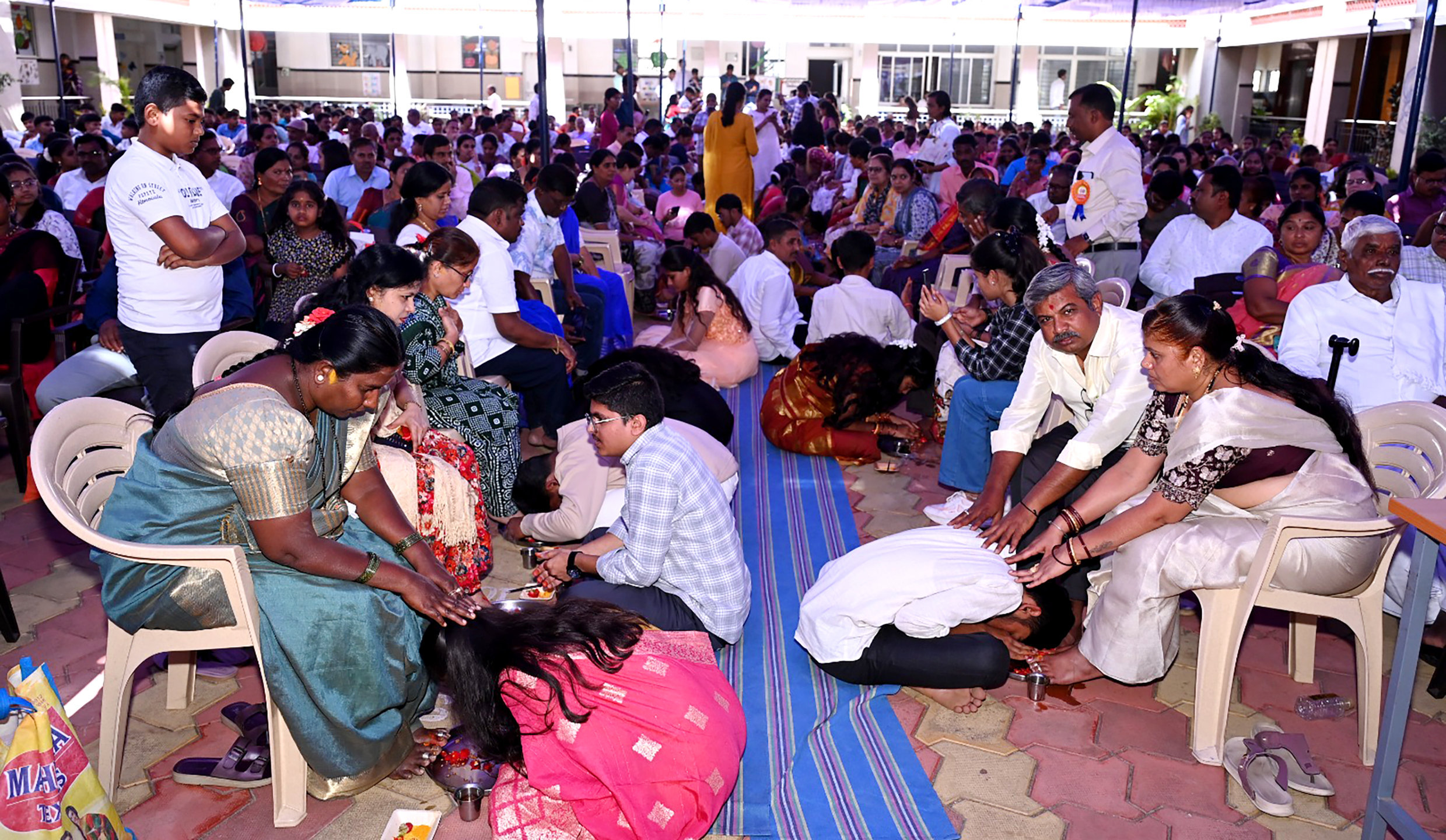 Senior talented students were felicitated at the event. Prizes were also distributed to the winners of sports, cultural, and yoga competitions. A very special highlight of the programme was the Pada Puja (feet-washing ceremony) performed by the students to honour their parents.