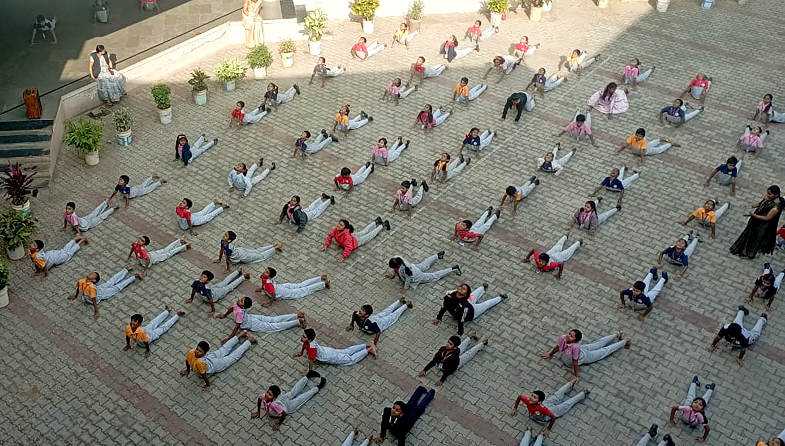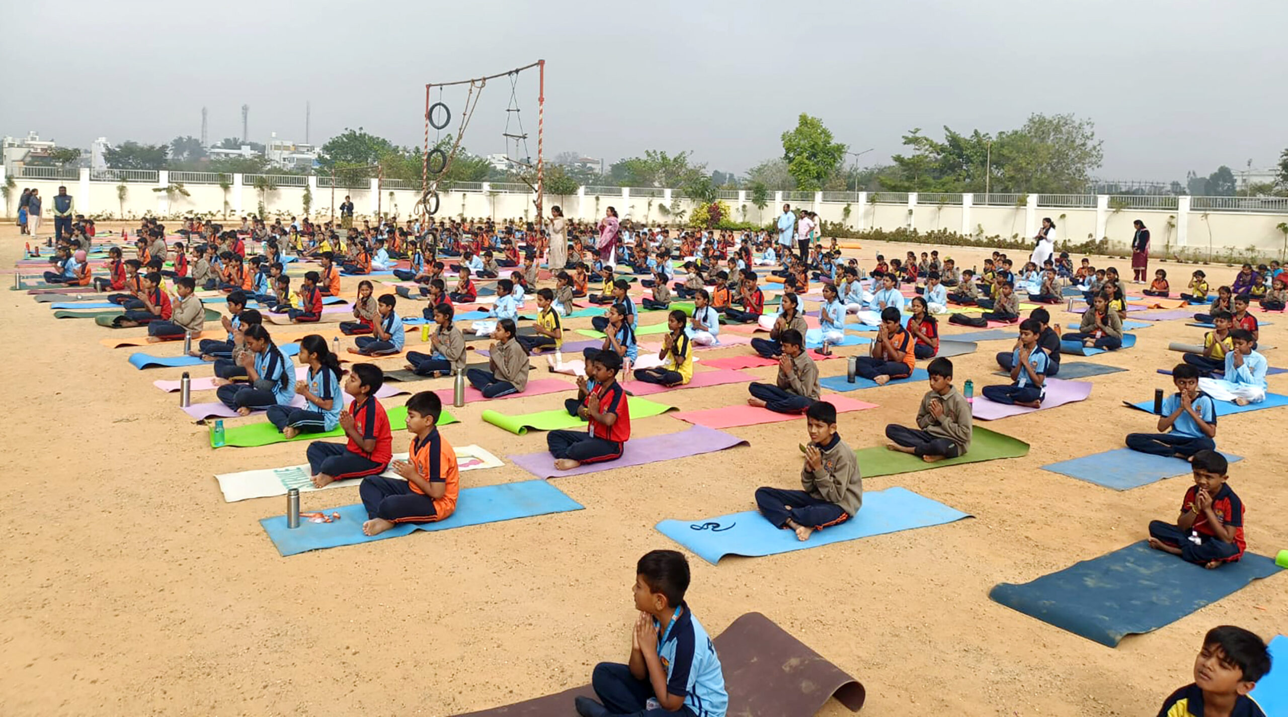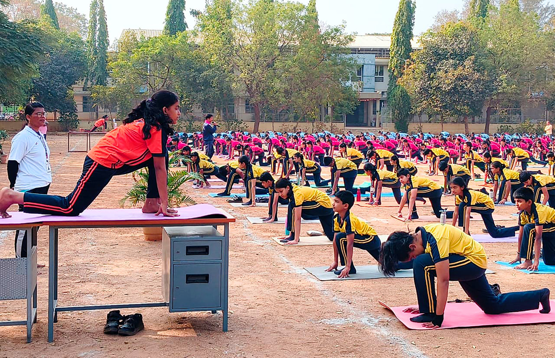 Jan 24: On the auspicious occasion of Rathasaptami, Yoga-Surya Namaskaras were offered to Suryanarayana (the Sun God) at Rashtrotthana Schools.
