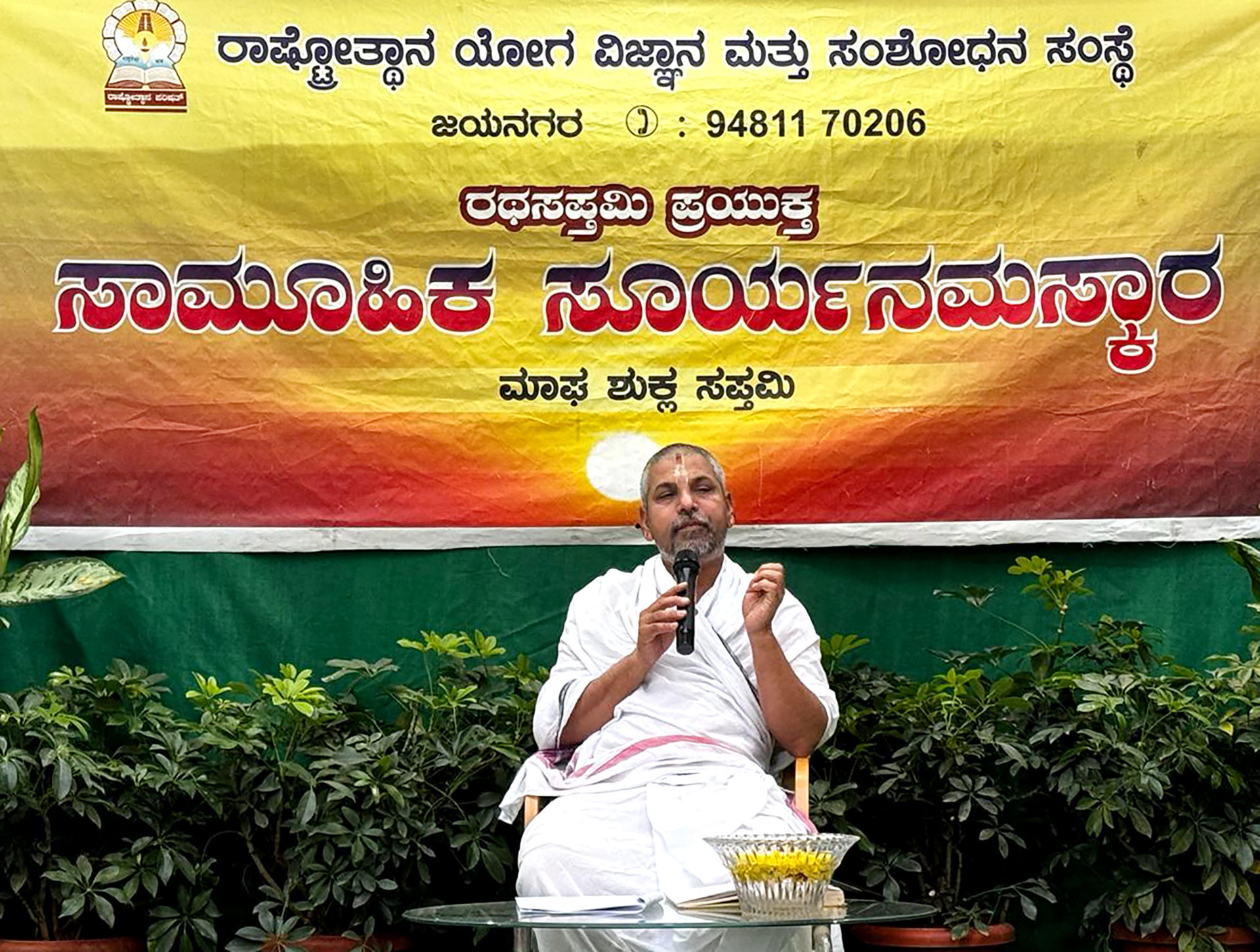 ಜ.25: ರಾಷ್ಟ್ರೋತ್ಥಾನ ಯೋಗಕೇಂದ್ರಗಳಲ್ಲಿ ರಥಸಪ್ತಮಿ ಪ್ರಯುಕ್ತ ಸಾಮೂಹಿಕ ಸೂರ್ಯನಮಸ್ಕಾರ ಹಾಗೂ ಪ್ರಾಣಾಯಾಮ ಅಭ್ಯಾಸವನ್ನು ಮಾಡಲಾಯಿತು.