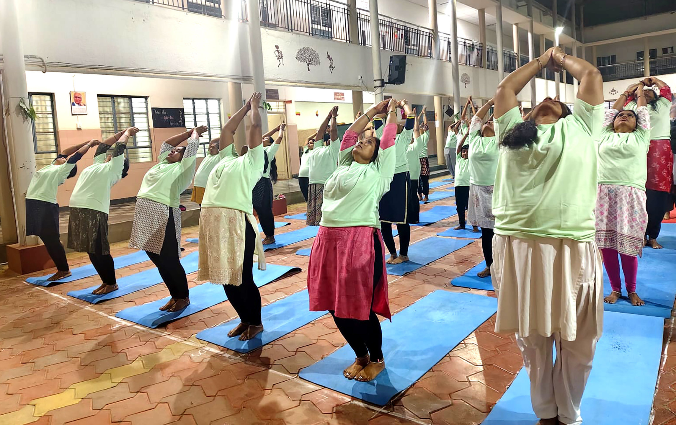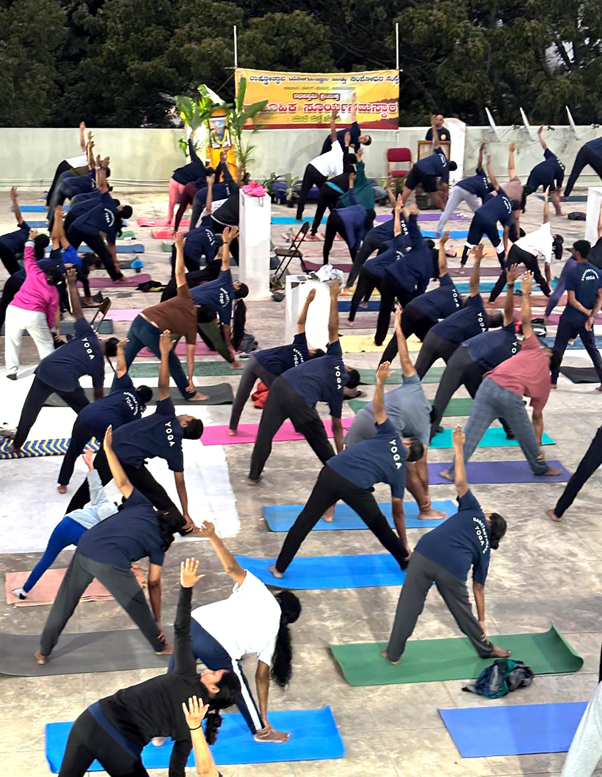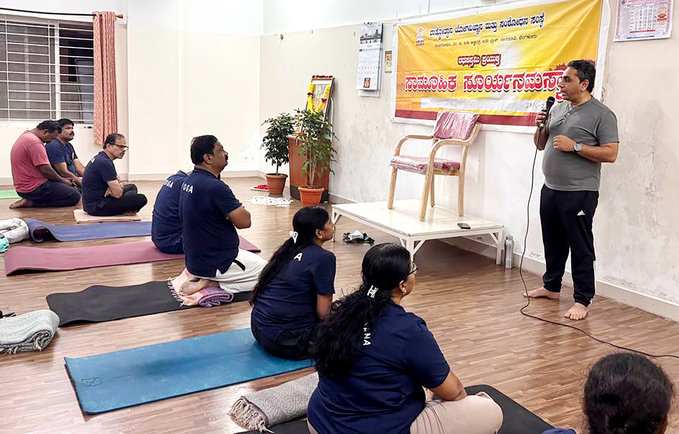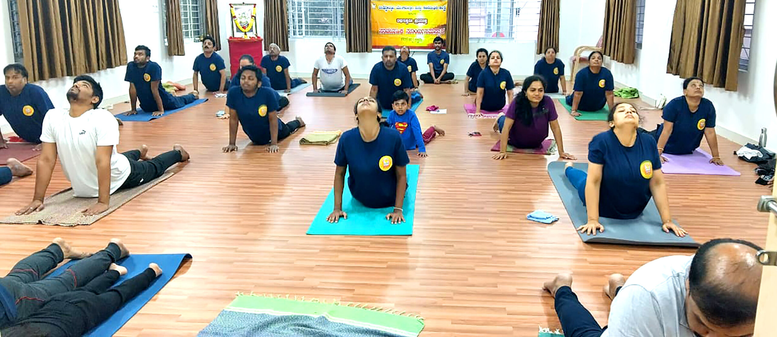 Jan. 25: On the occasion of Ratha Saptami, a mass Surya Namaskar (Sun Salutation) and Pranayama practice session was held at Rashtrotthana Yoga Centres.