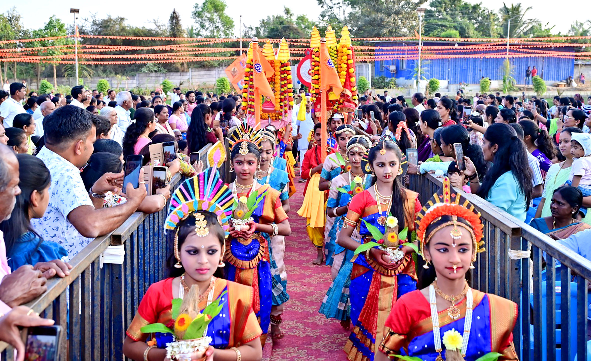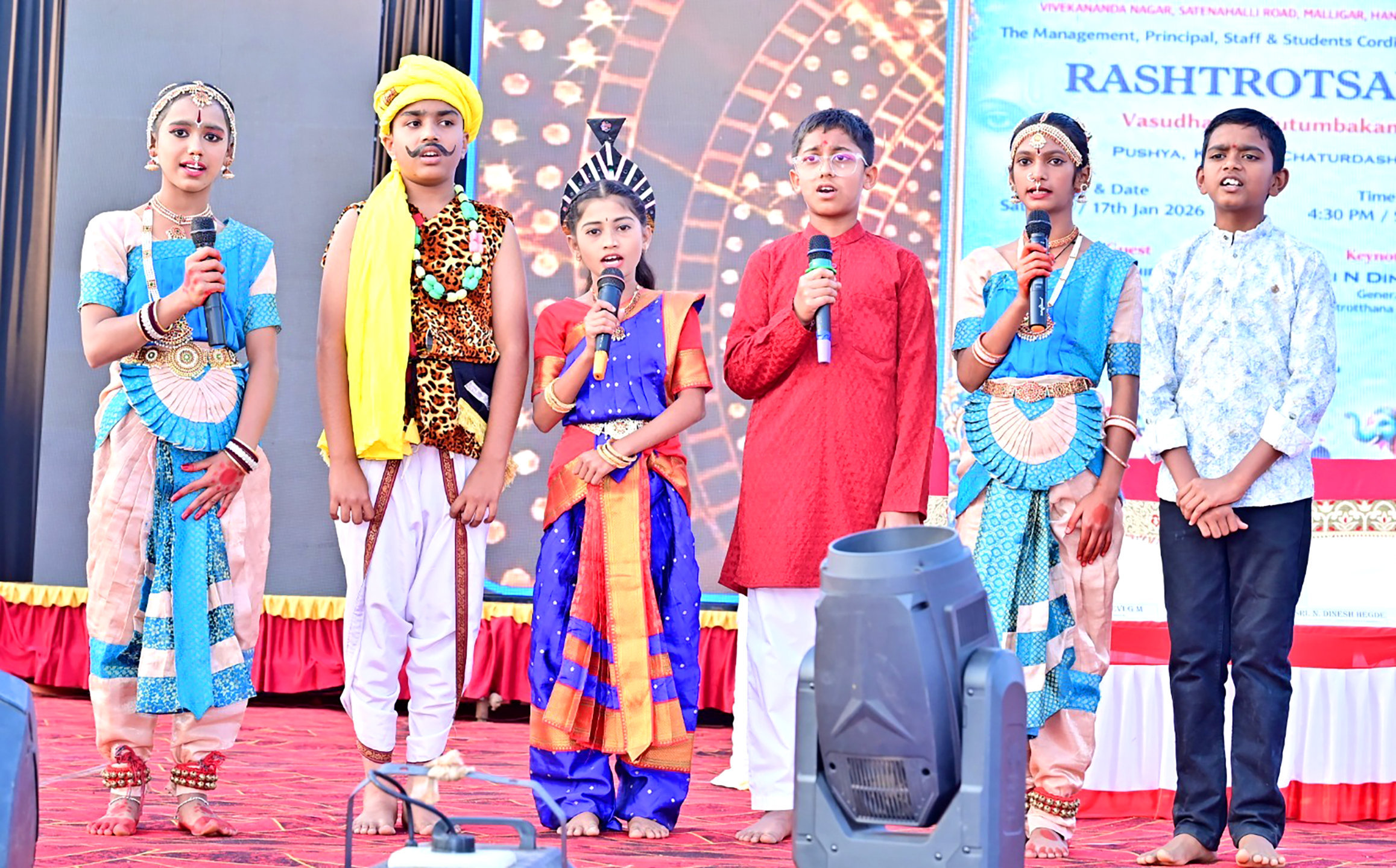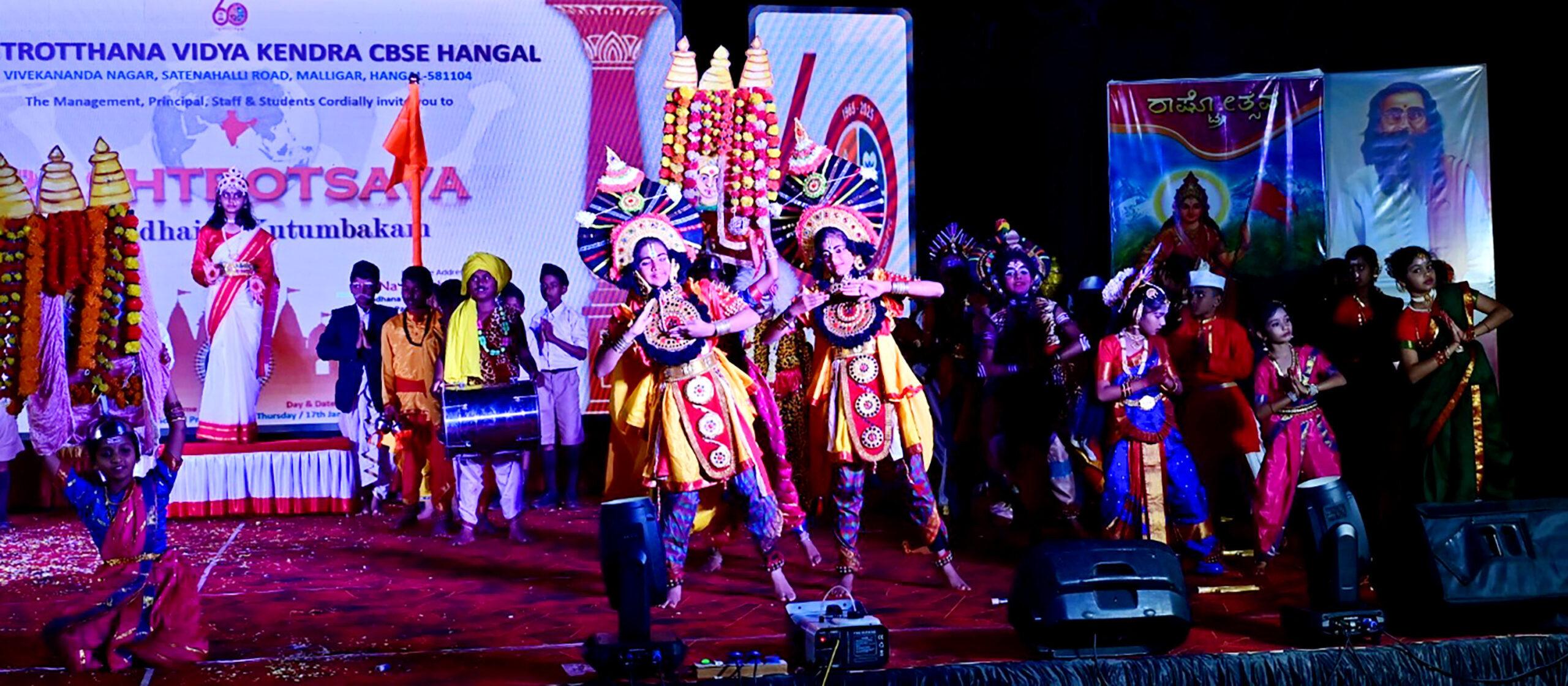 Haveri Dist, Jan 17: Rashtrotthana Vidya Kendra – Hangal, celebrated its annual cultural extravaganza, Rashtrotsava, with great fervour and patriotic zeal today at the school grounds. Themed “Vasudhaiva Kutumbakam” (The World is One Family), the event showcased a vibrant tapestry of Indian culture and tradition.