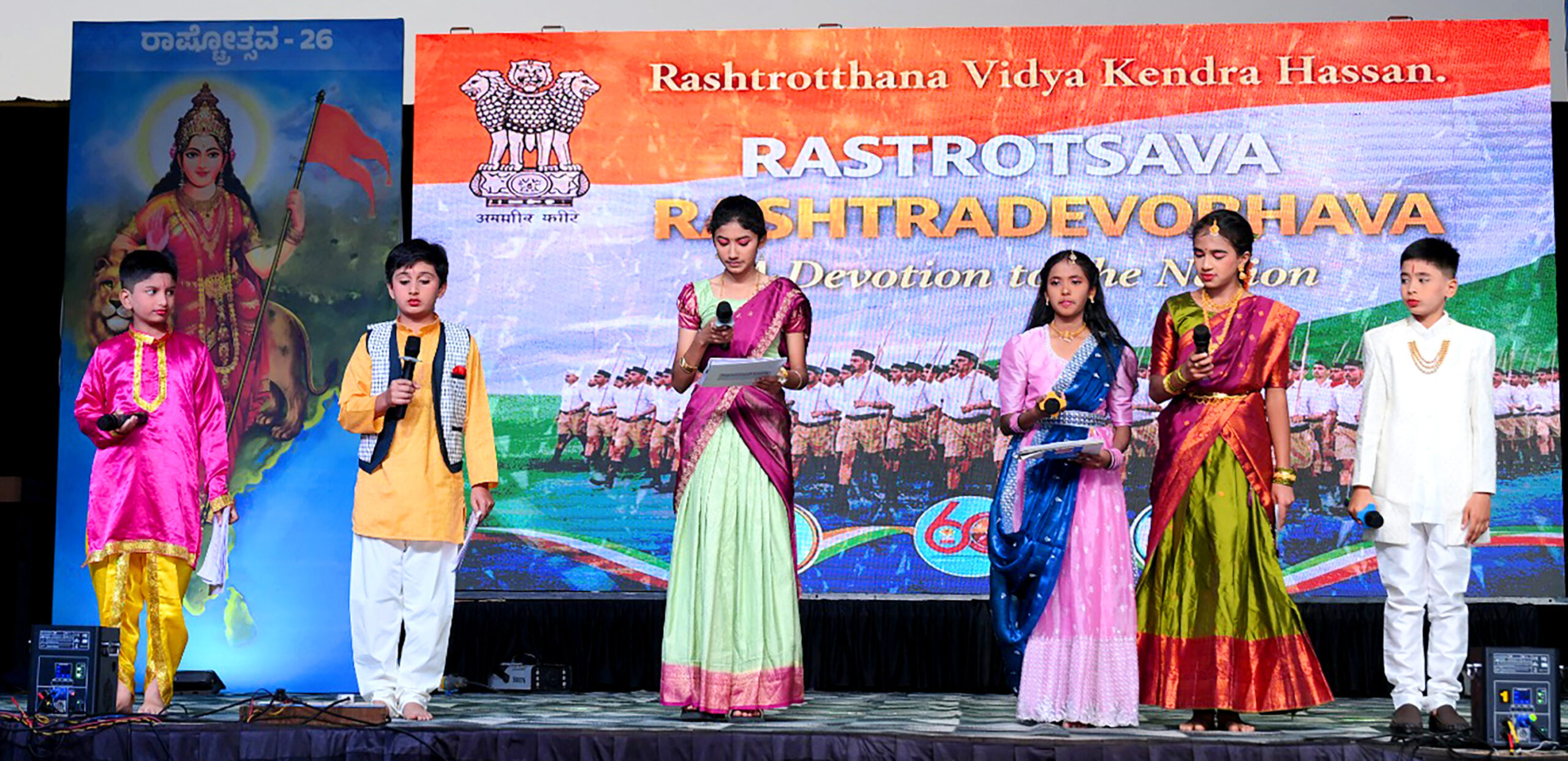 Jan 31: The first Rashtrotsava — Rashtra Devo Bhava — at Rashtrotthana Vidya Kendra, Hassan, was presented through diverse art forms such as dance, drama, vocal music, classical, and folk, reflecting culture, life values, and civic responsibilities. The event was graced by the presence of dignitaries including Prof. T. C. Taranath, Vice Chancellor of Hassan University, and Sri Na. Dinesh Hegde, General Secretary of Rashtrotthana Parishat, among others.